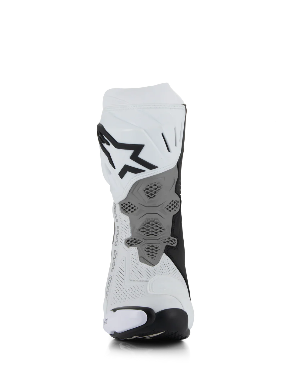 Almost every component of the Supertech R Boot, Alpinestars definitive racing boot as worn by a roster of champions past and present, has undergone a rigorous program of upgrades to sharpen its performance features even further. Featuring innovations derived using feedback from Alpinestars involvement in top flight racing, key elements include a newly redesigned front flex area, a redesigned rear bellow, a redesigned top gaiter, a new shifter and shin plate, a new shin slider and a new inner bootie, all of which enhance the comfort, protection and the performance of this boot to a new class-leading high.
