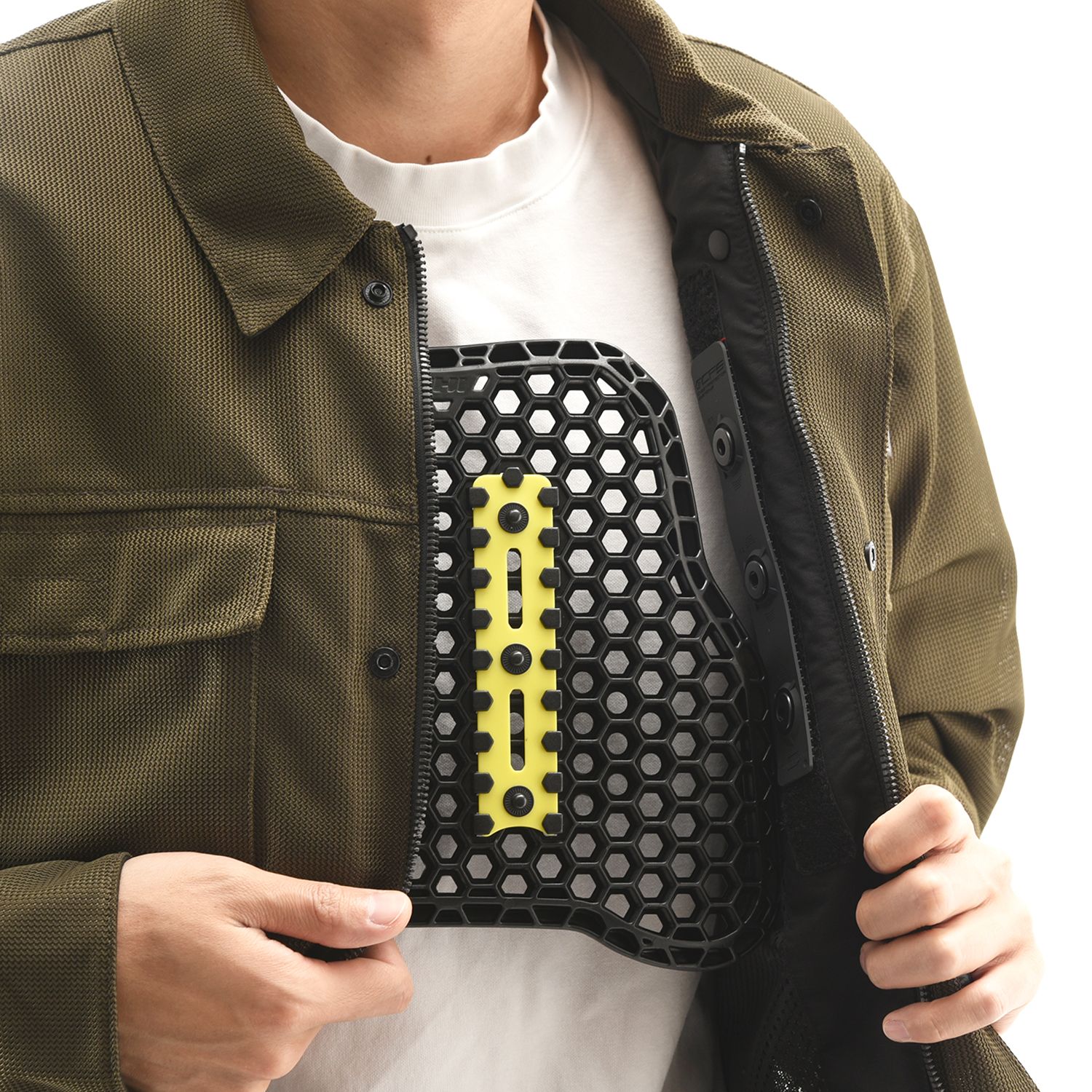 Chest Protector System (CPS) by snap button “CPS (Chest Protector System)” snap buttons are equipped. You can attach this chest protector easily by the snap button to the jacket with CPS(Chest Protector System). Position of chest protector is adjustable.