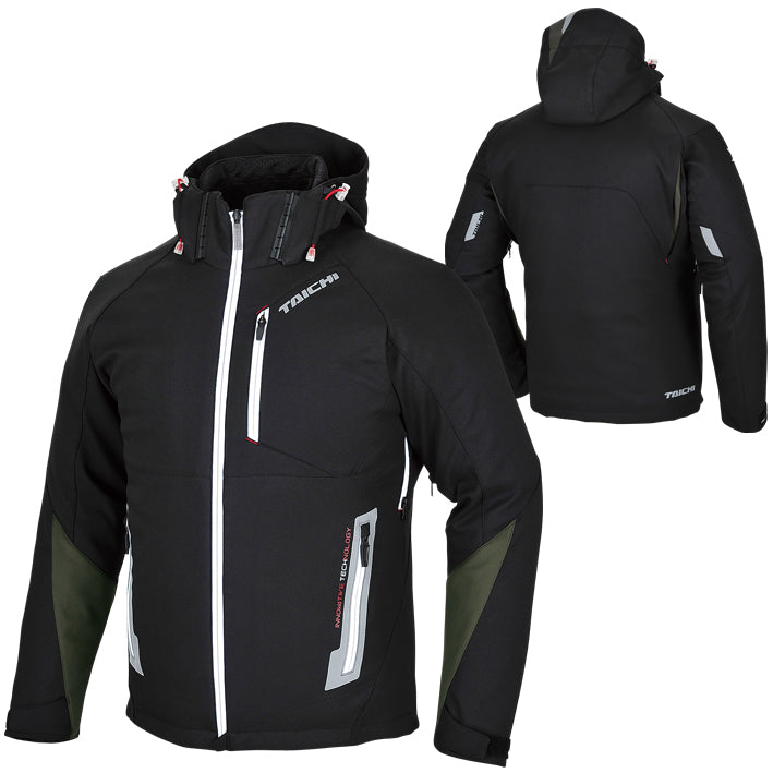 | This is one of the nicest casual style, but still functional riding jackets you'll find. It looks like a high-end soft shell casual jacket, but also works on the bike flawlessly. And it has a killer 2-in-1 liner jacket option for really cold days, and without the liner handles cool and mild days perfectly. The way you use the liner is to put the inner jacket on like you would a light casual jacket/sweatshirt. Wear it like just another layer of your casual clothing. Then when you are ready to ride, put the armored jacket/outshell on over it. You can secure the inner jacket to the outer at the collarbone attachment points if you want. And when you are on the bike, the main jacket has low profile, but CE certified elbow and shoulder armor, a back pad that can be upgraded if desired, zippered vents in the armpits, and a removable hood. Windstop elastic soft shell outer construction - FEELS GREAT! Removable, separately wearable, high quality inner jacket - extremely sharp, faux fur/long fleece trim on collar interior Removable and adjustable RS TAICHI low profile CE approved armor in shoulders, elbows and PE vented foam padding on back for inconspicuous protection Reflective print on front and back, back of arms, etc. CPS(Chest Protector System) snaps for adding one of Taichi's optional chest protectors Fast removal system on hood if you want it off while riding, plus pull-cords on hood and waist to handle all types of weather Hand warmer pockets on front, and exterior breast storage pocket Mildly water resistant with the aid of Teflon HT coating - not for hard rain, but fine for misty/damp and repels dirt/mud better Like most Taichi textile jackets, the Soft Shell runs at least one size tighter than marked. If you normally wear WM, order a WL. |