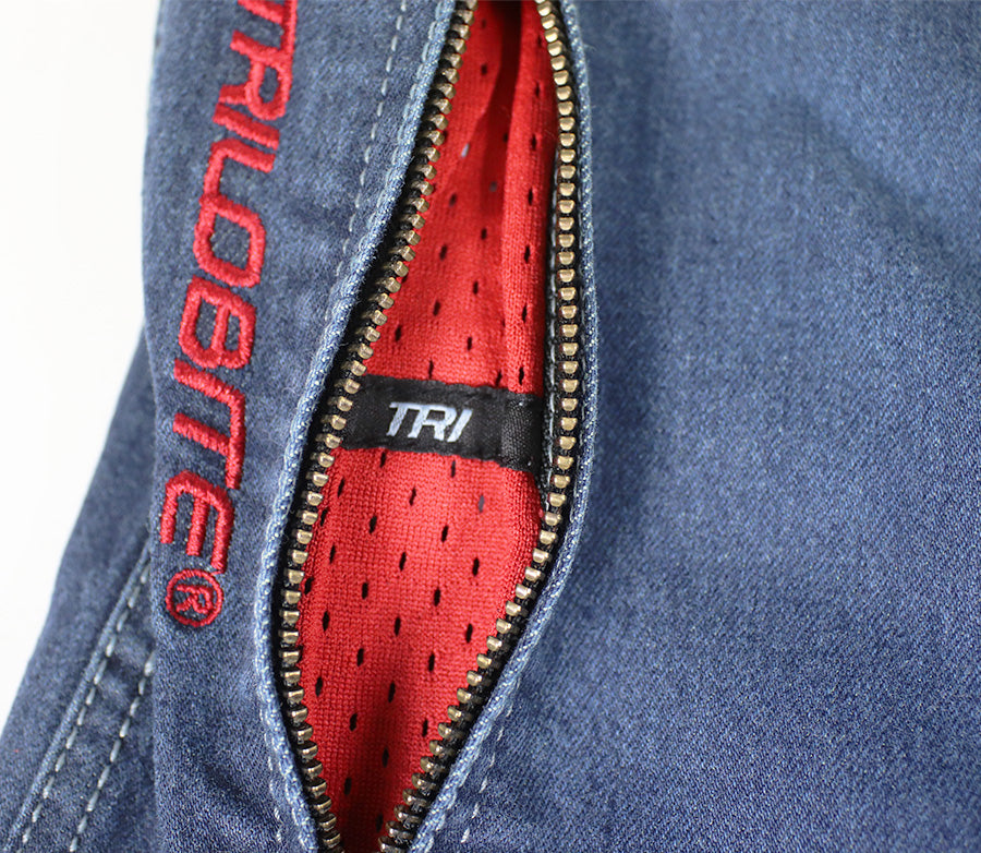 TRI-STRETCHER® PRO 5.0 Denim is a blend of nylon-based synthetic polymer fibers and aromatic polyamides (aramid) with a denim look. This fabric is unique with its amazing strength and at the same time low weight. TRI-STRETCHER® PRO 5.0 Denim is a clever "team" of different fibers woven together to protect you in the event of an accident with the same performance as a leather suit, but without sacrificing comfort. This is a modern fabric that is the future of motorcycle riding.