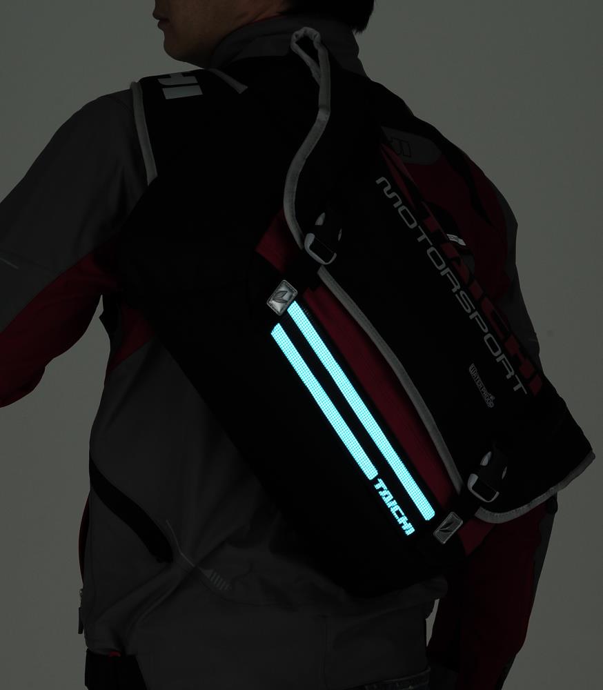 Waterproof main compartment Front flap pocket (non-waterproof) Organizer pocket (non-waterproof) Large back pocket (non-waterproof) Easily adjustable shoulder strap with large padding Removable cross strap Foam padding on back for air flow and good fit Key hook equipped Prism type reflective material offers superior performance in wet weather conditions Size 15 x 25 x 29cm