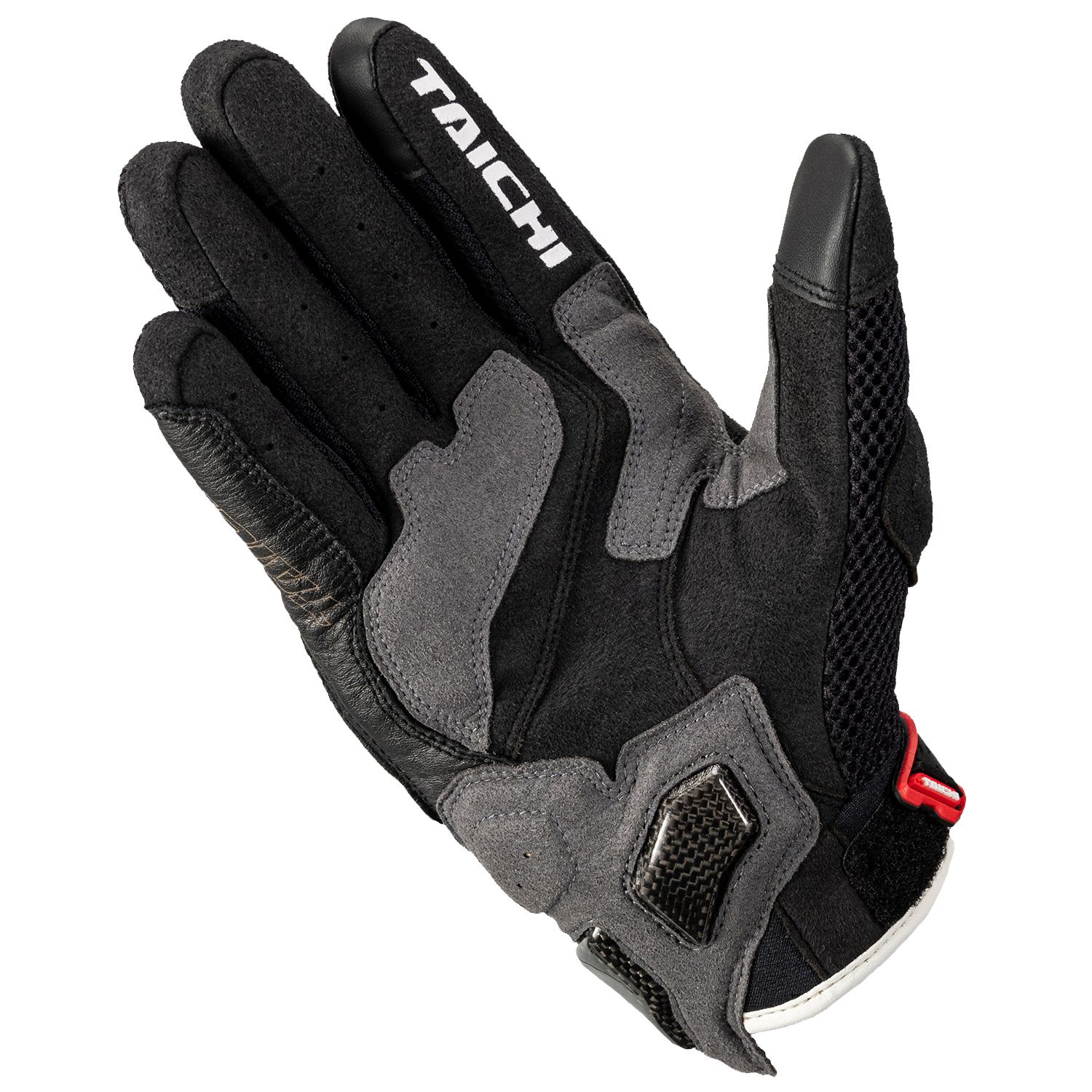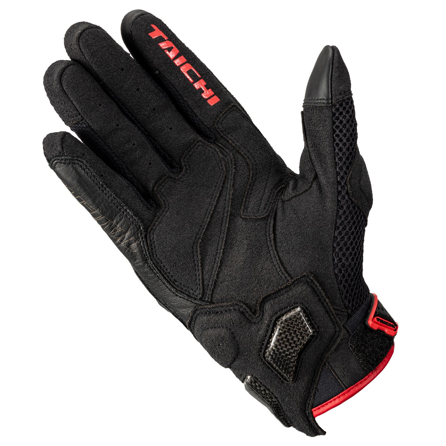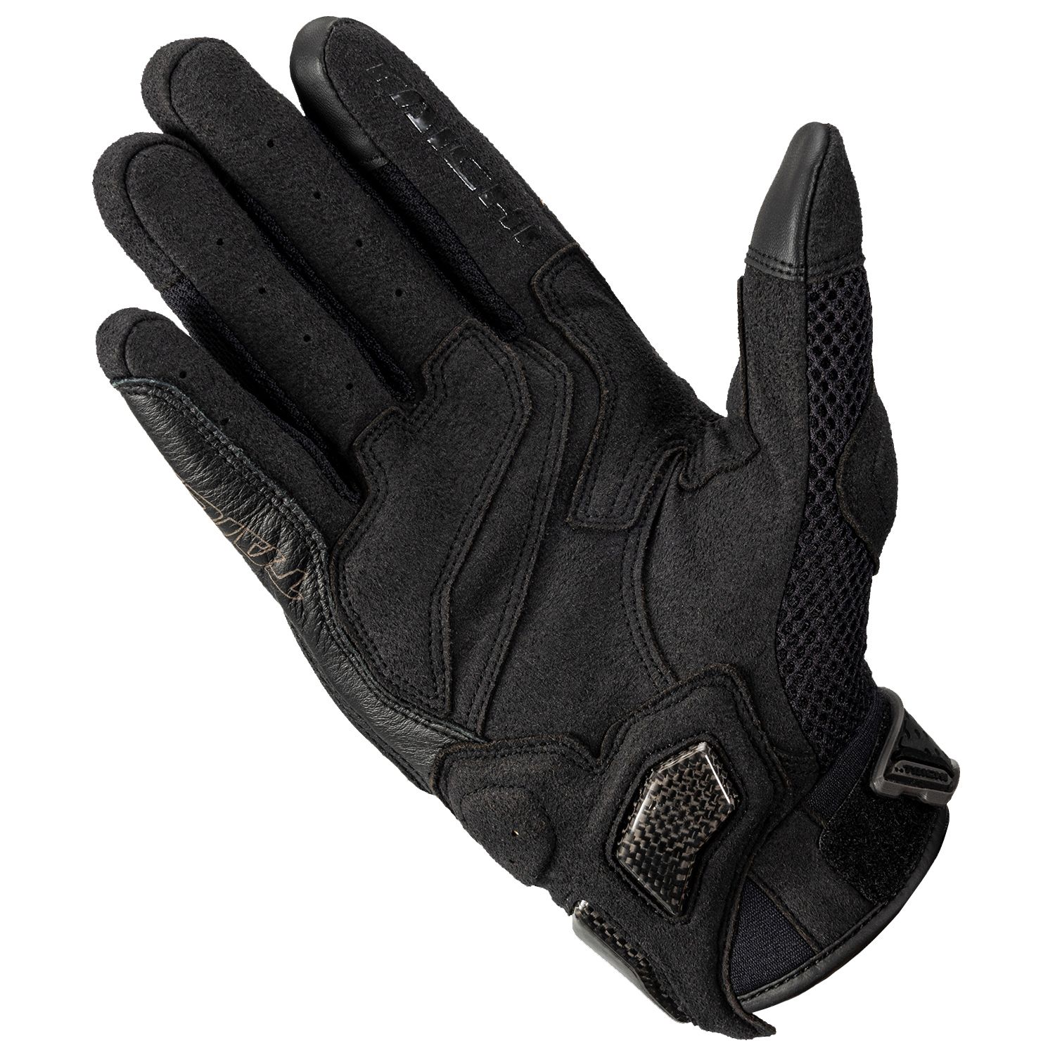 Air through mesh glove with comfort and high protection by excellent breath-ability and stretchy mesh fabric and carbon protector.